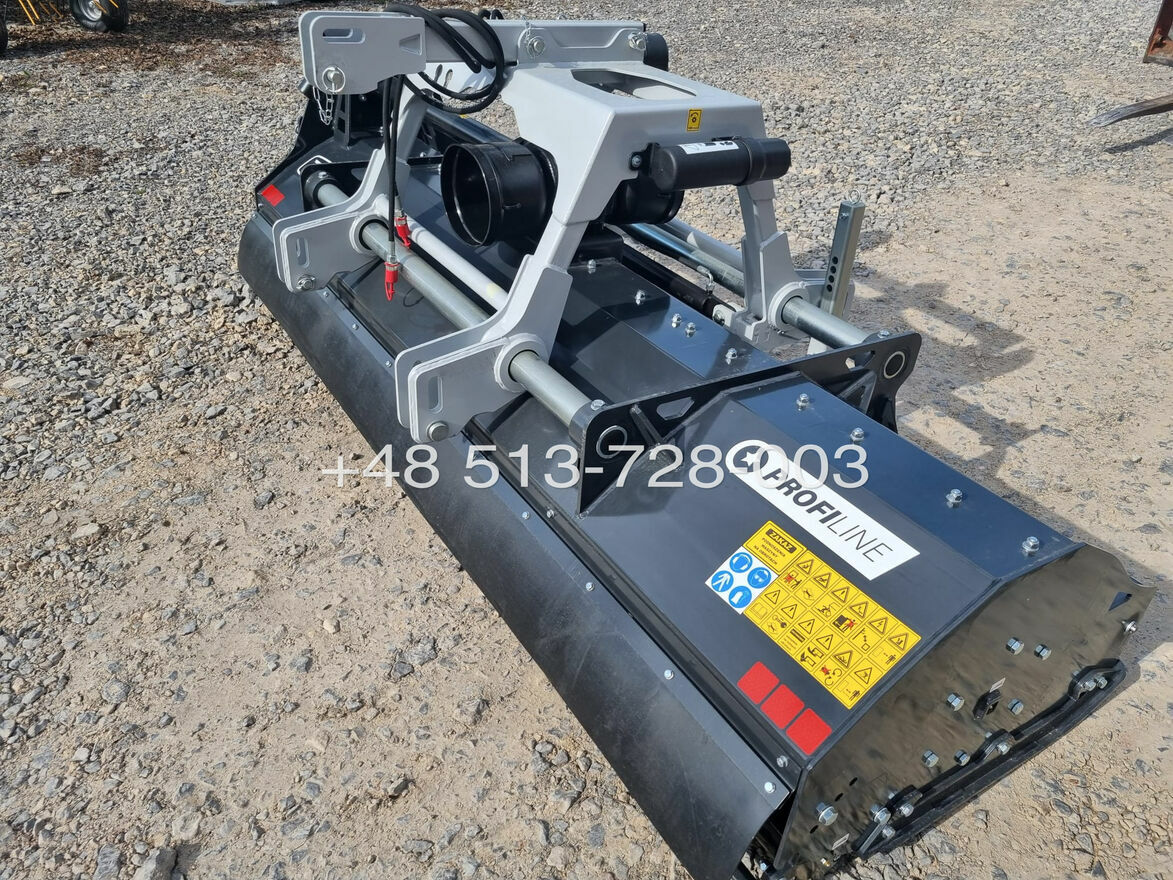 Kosiarka bijakowa tylno-czołowa z przesuwem hydraulicznym z serii PROFILINE to maszyna idealna do wykaszania nieuprawianych gruntów, sadów, resztek pożniwnych po zbiorze między innymi kukurydzy czy słonecznika. Możliwość pracy na przodzie jak i na tyle ciągnika stanowi wszechstronne narzędzie do pielęgnacji obszarów zielonych. Umożliwia użytkownikowi stosowanie do konkretnych potrzeb i warunków terenowych. Maszyna ta podczas pracy na przodzie ciągnika w połączeniu z kosiarką bijakową tylną pozwala na zarządzanie większą powierzchnią roboczą, co wpływa na obniżenie kosztów i czasu pracy. Zastosowanie dwóch rzędów wymiennych przeciw noży polepsza rozdrobnienie koszonego materiału korzystnie wpływając na końcowy efekt pracy. Przesuw hydrauliczny pozwala na sprawne manewrowanie, co czyni obsługę maszyny łatwą i przyjemną.